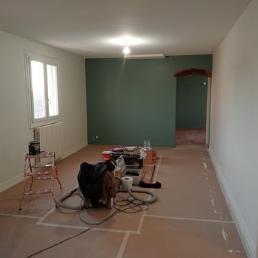 Ces photos présentent différents chantiers réalisés chez des particuliers : travaux de peinture, rénovation intérieure et pose de parquet. Chaque projet est réalisé avec soin afin de garantir un résultat propre et durable.
